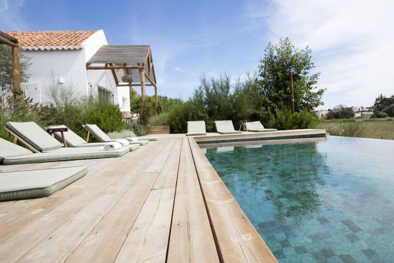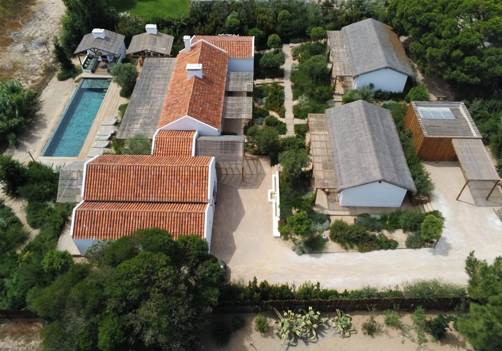 Just outside Comporta, Casa Ayina is an authentic and elegant haven of peace. Its white stucco facade and red terracotta roof house a unique 1950s decor, all wood, rattan, and fabrics.